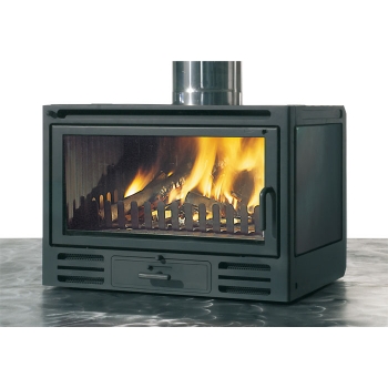 Wkład kominkowy na drewno, idealny do odnawiania starych kominków otwartych lub tworzenia nowych, charakteryzujący się stonowaną i podstawową elegancją.